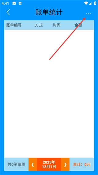 在扫码收银页面点击右上角的账单图标,进入账单统计页面后,就能查看交易记录的相关信息。