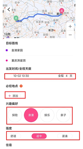 3、规划行程时,可依据自身需求定制相关内容,填写完成后,点击【生成AI路线】按钮即可。