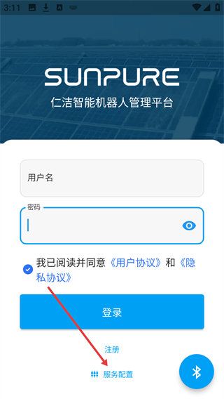 1、在登录页面点击【服务配置】选项,进入服务站点选择界面,可对平台的服务地址进行配置。