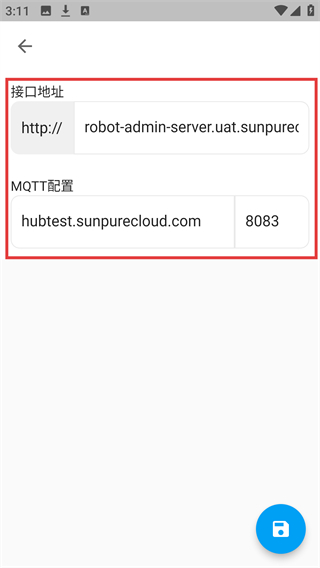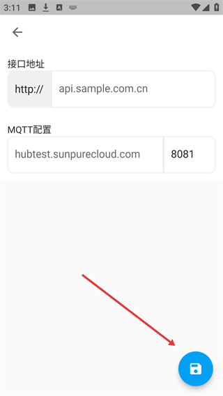 3、在配置编辑界面依次填写【接口地址】和【MQTT配置】的对应内容,以此完成平台服务参数的配置工作。