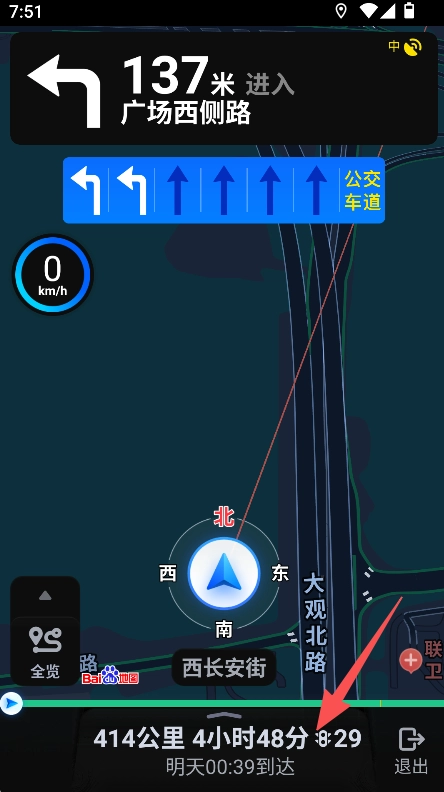 3、点击开始导航,查看实时行程与到达时间。