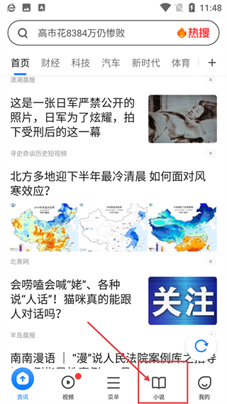 在资讯页面中,点击底部导航栏里的【小说】选项,就能进入对应的小说功能页面,之后可以开展书籍相关的操作。