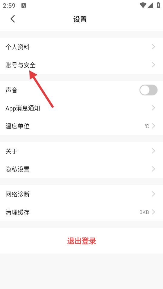 3在设置界面中找到并点击“账号与安全”选项,即可跳转至账号安全管理界面。