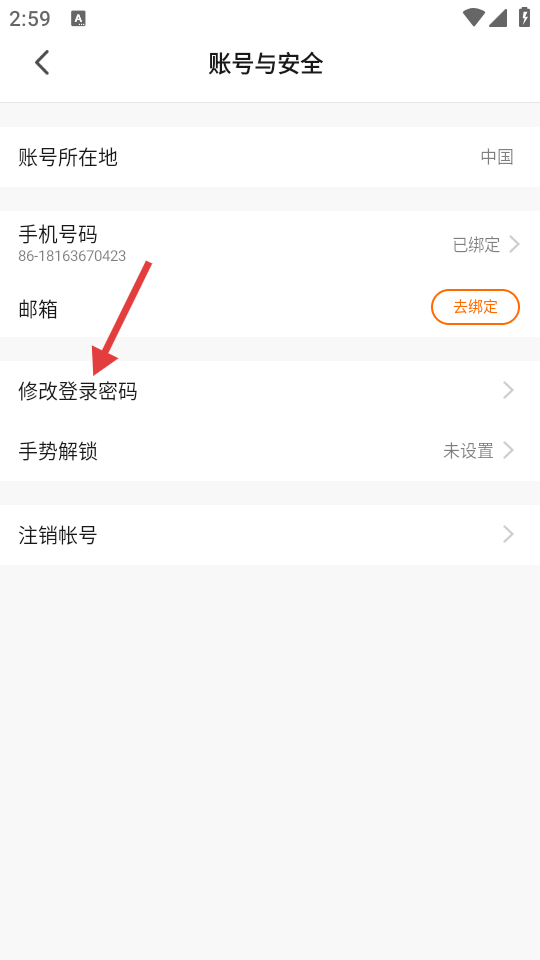4、进入账号安全页面后,点击【修改登录密码】选项,随后按照页面提示逐步完成密码修改的相关流程。