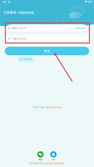 1、阅读【用户隐私与使用协议】后,点击【同意-按钮】,进入登录界面。