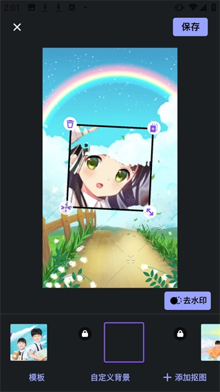 4、在制作页面中,能够调整图片的摆放位置,也可以选择自定义背景,还能添加抠图效果,所有设置完成后,点击【保存】按钮就可以了。