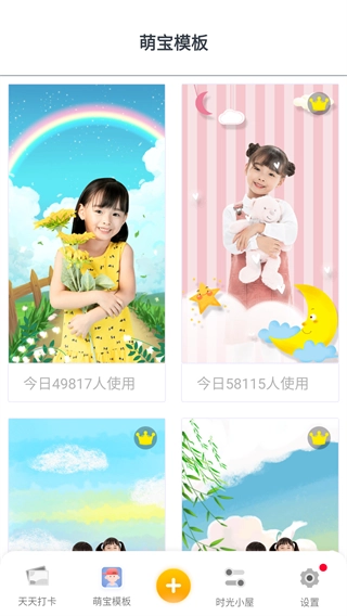 1、进入成长记录应用的首页后,点击【萌宝模板】选项,即可进入模板选择页面。