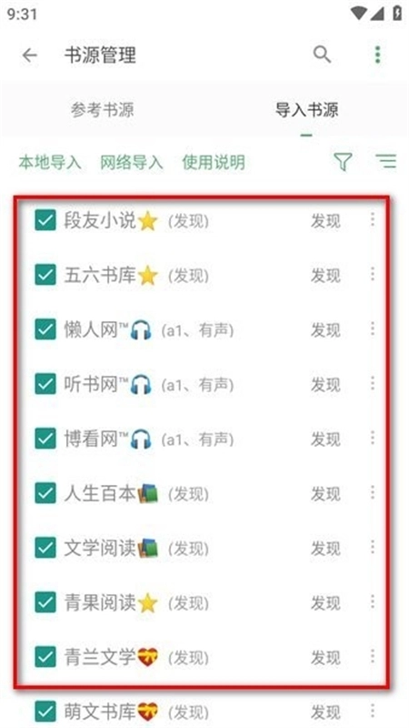 4、到这里书源就导入成功了,再次打开“导入书源”,就会展示书源有哪些,看下图。