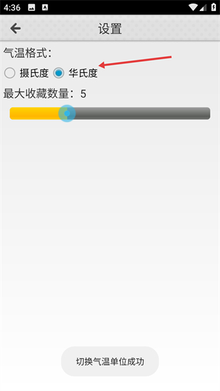 4、完成选择后,页面会显示“切换气温单位成功”的提示,至此气温格式的切换操作就完成了。