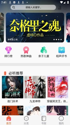 声阅是一款全能的有声内容服务软件,为广大用户带来了多种类型的音频内容,更好地满足大众的精神娱乐需求。这里包含了有声小说、热歌神曲、亲子儿歌、相声评书等内容,受众的用户更为广泛,同时实现了免费的服务,得以获得更为优质的使用体验。