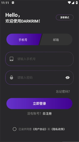 2. 输入手机号和密码,即可快速登录,进入主页面;