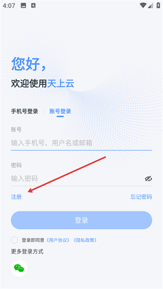 2、在账号登录页面找到并点击【注册】按钮,即可跳转至账号注册页面。