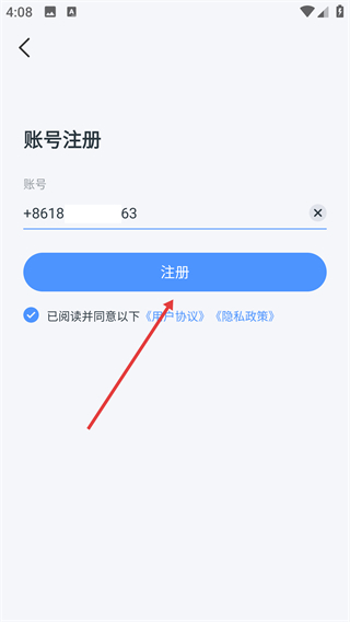 4、输入手机号码后,点击【注册】按钮,即可完成账号注册操作。