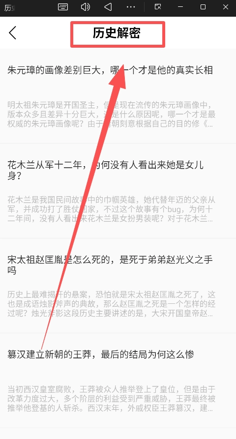 2、深度探索:如果你对某个特定历史时期、人物或事件感兴趣,直接使用 “发现” 页的细分栏目或 “历史” 页的分类标签,进行精准查找和系统性的阅读。