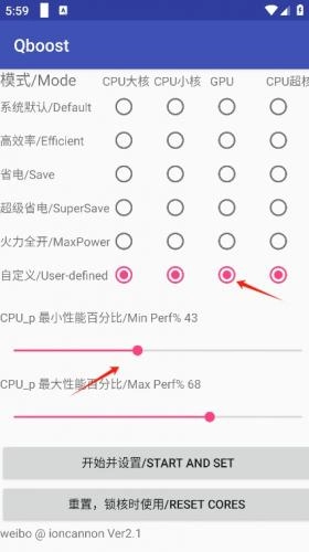2、用户们可以根据不同的使用场景,来进行相应的cpu 、gpu大小核设定操作;