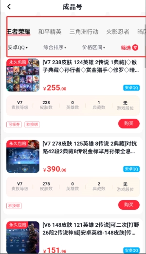 进入主界面后,找到并点击“账号交易”功能模块,即可浏览各类游戏成品账号。