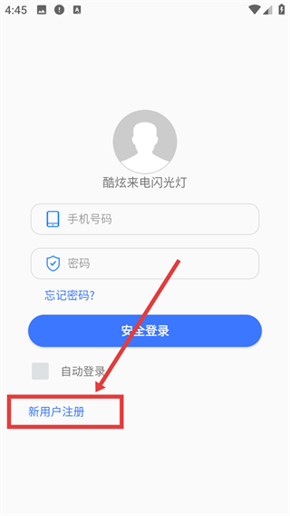 3、在登录页面点击【新用户注册】选项,即可进入注册界面。