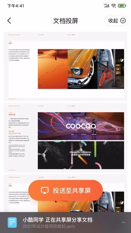 2. 支持文档预览,您可以在线预览共享内容,一键折叠选择框,直接开始共享。