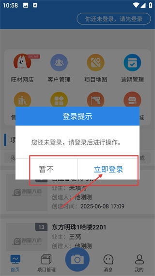 1、在主界面底部点击【我的】,如果还没登录会弹出【登录提示】弹窗,提示需要登录后才能进行操作,此时可以选择【立即登录】进入登录页面。