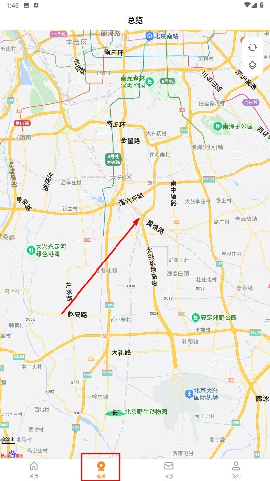 4、点击底部的【总览】按钮,即可查看设备的位置地图信息。