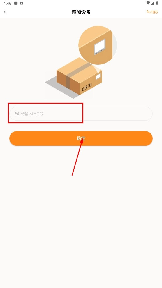 3、在输入框中填写IMEI号,点击【确定】按钮即可完成设备添加。