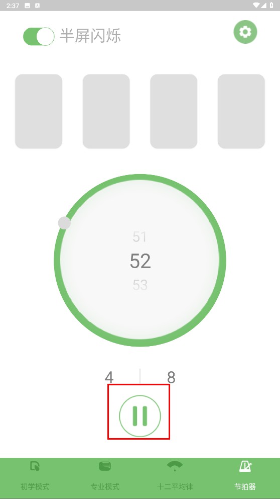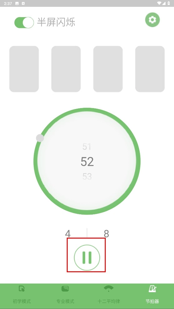 4、在节拍器界面,点击【暂停播放按钮】可暂停开始节拍器运行。