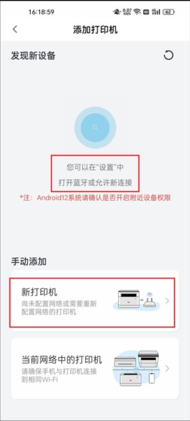 2、打开手机蓝牙,会自动搜索打印机,也可以手动添加打印机