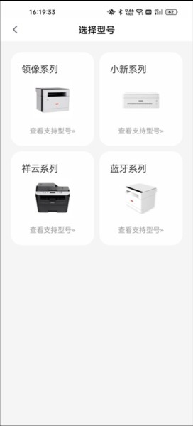3、挑选打印机系列时,可选择领像系列、小新系列、祥云系列、蓝牙系列。
