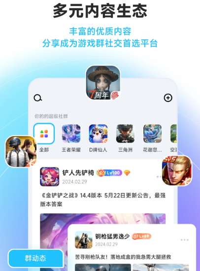 4、在“探索”界面的“群动态”板块,能够查看各类游戏相关的动态内容。
