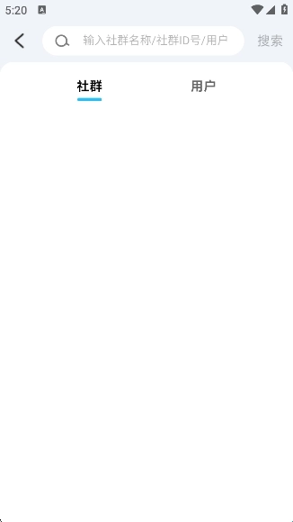在搜索界面中,用户可输入社群名称、社群ID或用户信息进行搜索,以查找自己感兴趣的社群或用户。