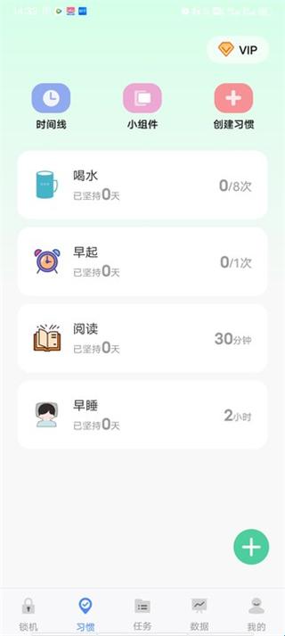 2、点击“习惯”选项,用户能够自主创建专属习惯,并通过设置目标次数,开启属于自己的自律生活之旅。