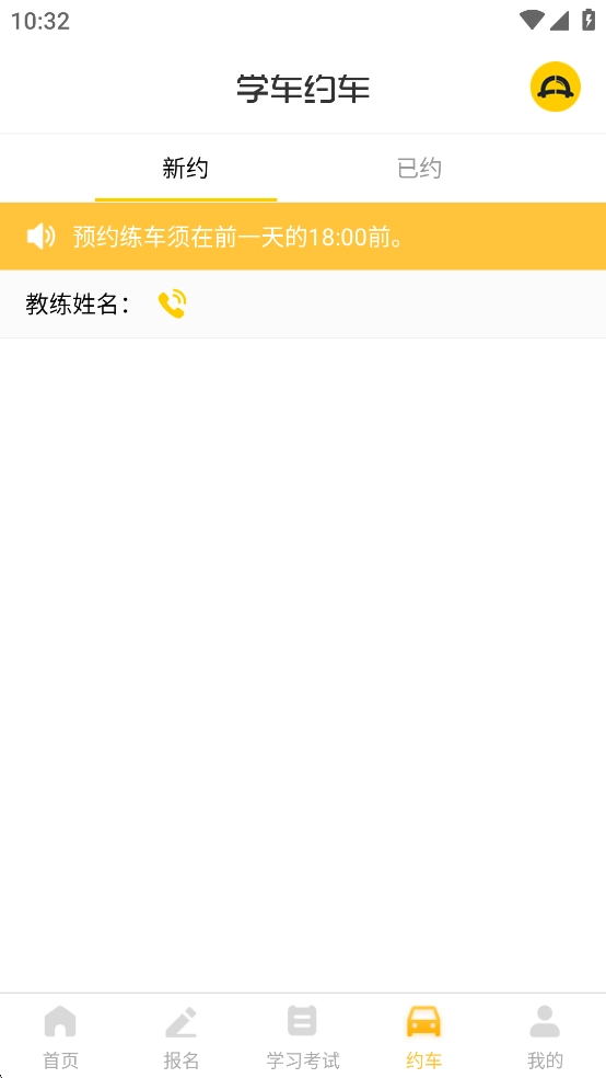 3、约车:支持在线预约教练与实操训练,可扫描教练二维码记录学时,规范训练流程。