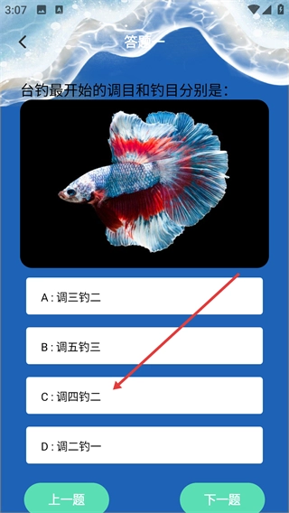 3、在答题页面选择正确答案(如“调四钓二”)。