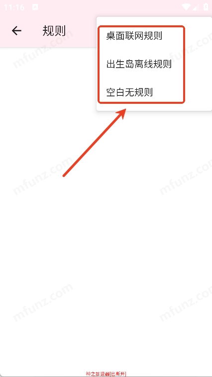 4、在规则界面点击右上角+号,选择规则模式