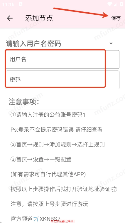 6、输入用户名和密码,点击右上角保存按钮