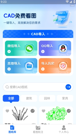 2、进入首页的图纸库,各类图纸只需一键操作就能在线导入,可高效满足您的使用需求。