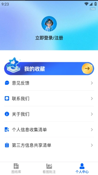 4、点击进入个人中心,用户在使用过程中若有意见可直接进行反馈,此外还能查看个人收藏的图纸。