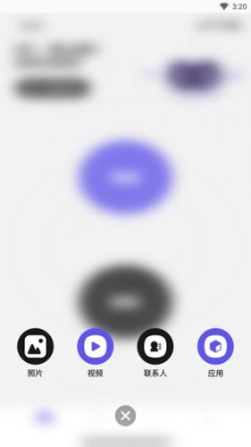 2、选择要传送的文件类型,如照片、视频、应用等;