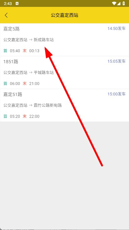 2、打开公交站点页面,挑选想要查询的公交线路,例如嘉定5路。