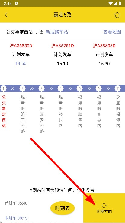 3在公交线路的详细信息页面,通过点击方向切换按钮,可查看线路反向运行时的站点列表。