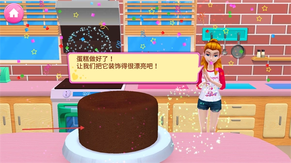 4、蛋糕烘烤完成后,会出现【蛋糕做好了!让我们把它装饰得很漂亮吧!】的提示,接下来可进行装饰操作。