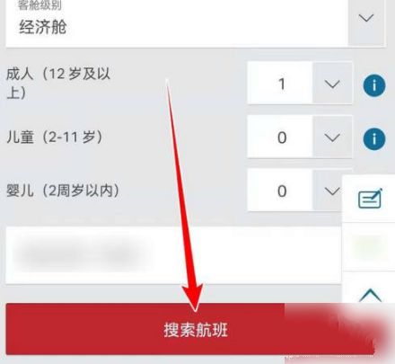 3接下来进入航班相关页面,依据页面上给出的指引步骤进行操作,最后点击搜索航班的按钮来完成购票流程。