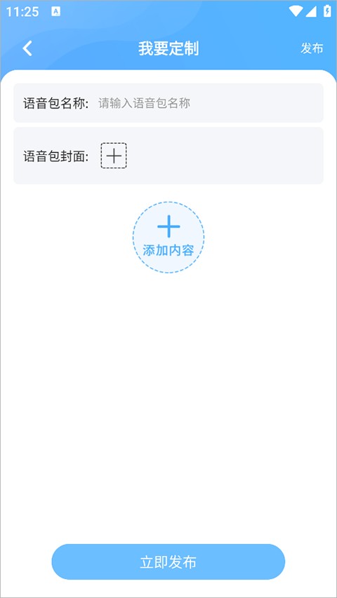 在定制页面中,填写语音包的名称、上传封面并编辑内容,同时完成各项相关设置。
