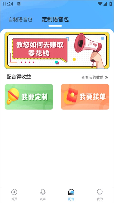 发布定制语音包,待用户购买或完成相关任务后就能获取收益,还能体验语音包定制的乐趣!