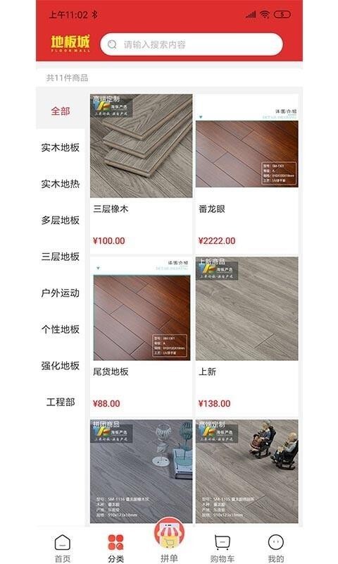 用户能够通过进入分类板块,挑选各类不同的地板类别,以此完成地板的选购操作。