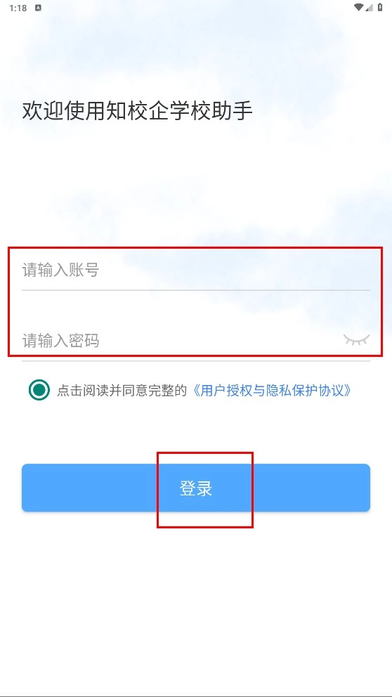 2、在登录界面,输入账号、密码,点击【登录】,进入知校企学校助手系统。