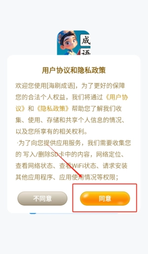 1、点击同意并进入应用后,即可着手进行成语学习的相关设置,从而顺利进入学习环境。