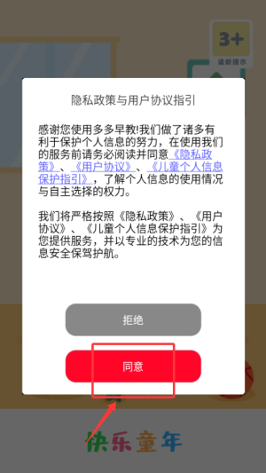 1、在多多早教里点击“同意”隐私政策,即可进入程序界面。