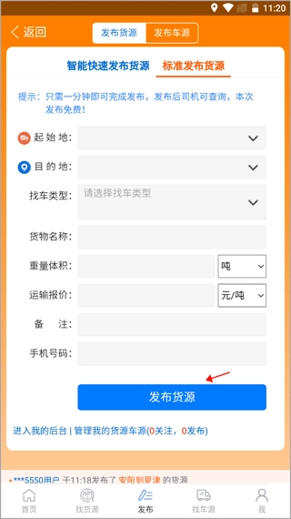 2填写货源的基础资料和目的地这类位置信息后,点击页面下方的“发布货源”按钮即可完成操作。