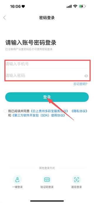 4在密码登录的页面中,依次填写注册时绑定的手机号码与对应的密码,随后点击登录按钮,即可完成整个登录流程。